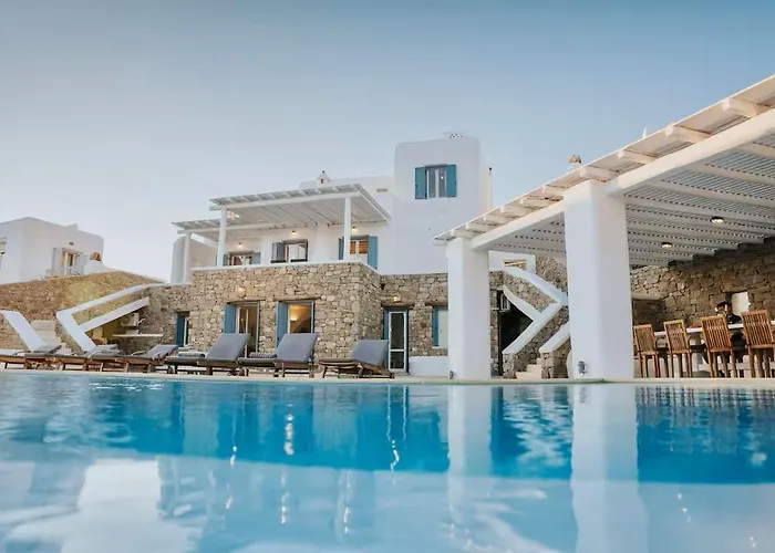 Die Villa Enthera Mykonos Fanari empfängt die Gäste mit einem Jacuzzi und befindet sich circa 8 Minuten vom Leuchtturm am Kap Armenistis entfernt. Die Villa in Fanari bietet Gästen WLAN und einen Privatparkplatz und ist in 4 Kilometer Entfernung von der Matogianni-Straße.